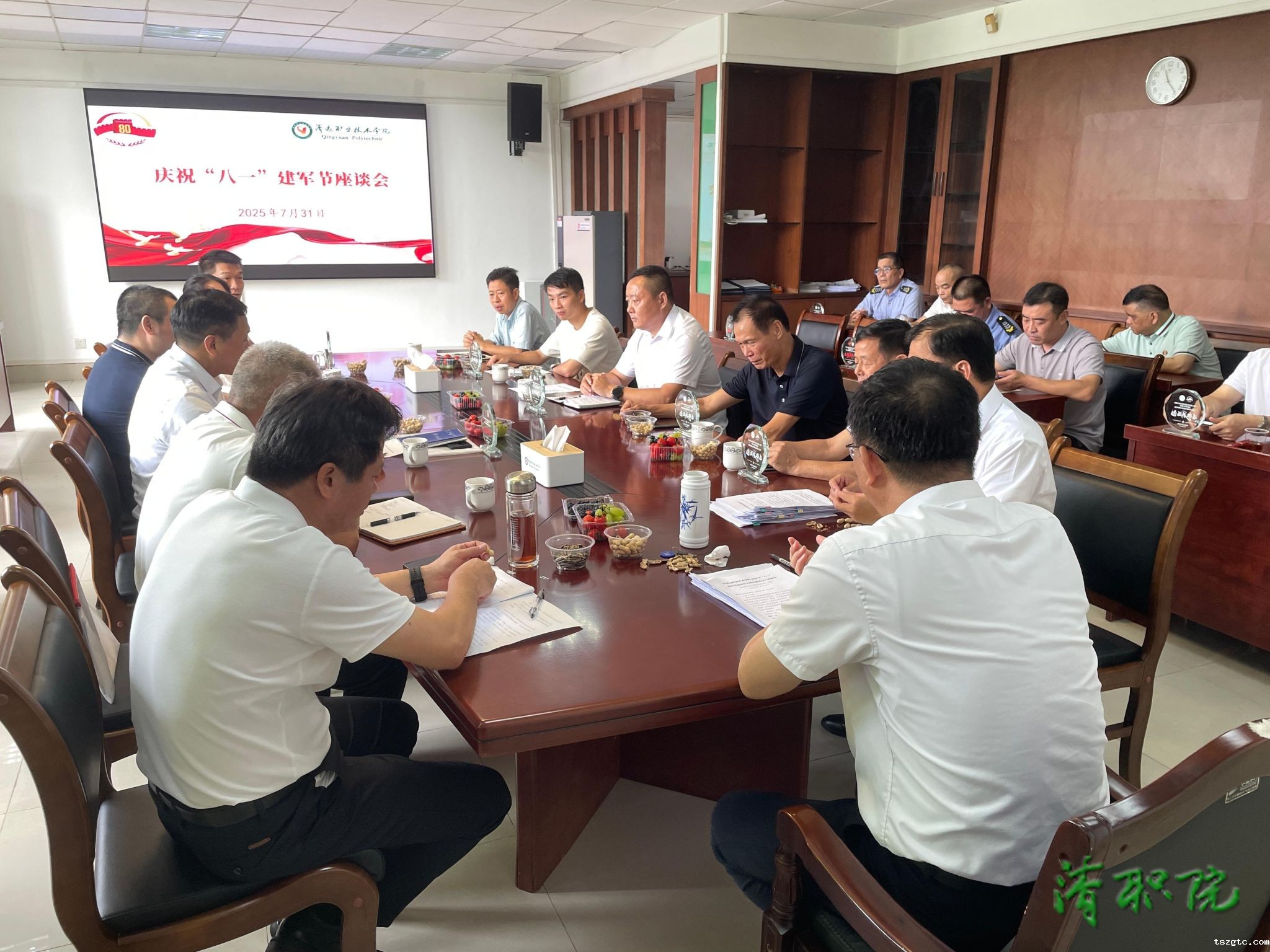 7月31日上午,清职院召开庆祝“八一”建军节退役军人代表座谈会。学院党委书记李斌出席并讲话,党委副书记植新培主持会议。相关职能部门负责人及15名退役军人师生代表齐聚一堂,共忆军旅荣光,共话学院发展。
