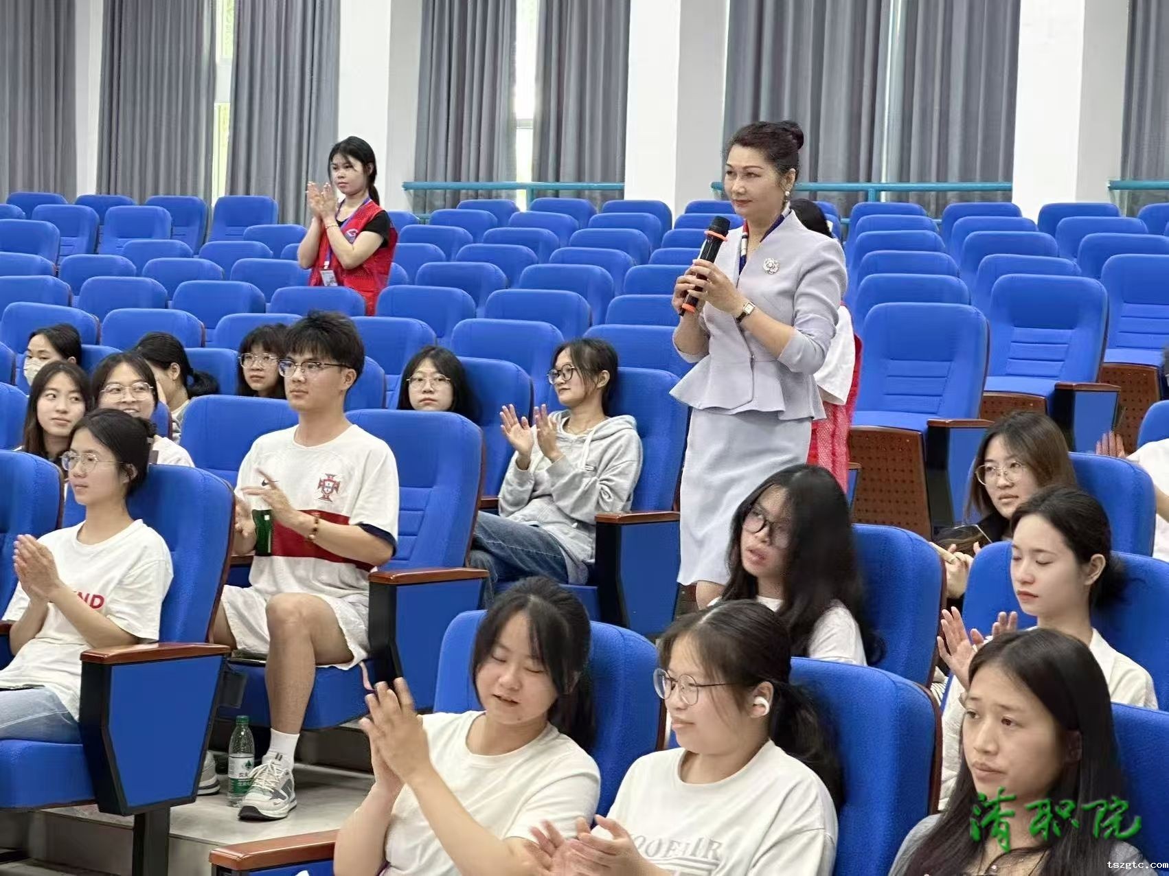 党总支副书记林清群围绕“大学生礼仪素养”主题,结合学生实际情况从个人礼仪、师生礼仪、生活习惯礼仪、公共场合礼仪四大板块展开讲解。她强调,礼仪不仅是传统美德,更是当代青年综合素质的体现。作为新时代大学生,更要以礼仪彰显风度与内涵,不断提升综合礼仪素养,为今后职业发展奠定基础。