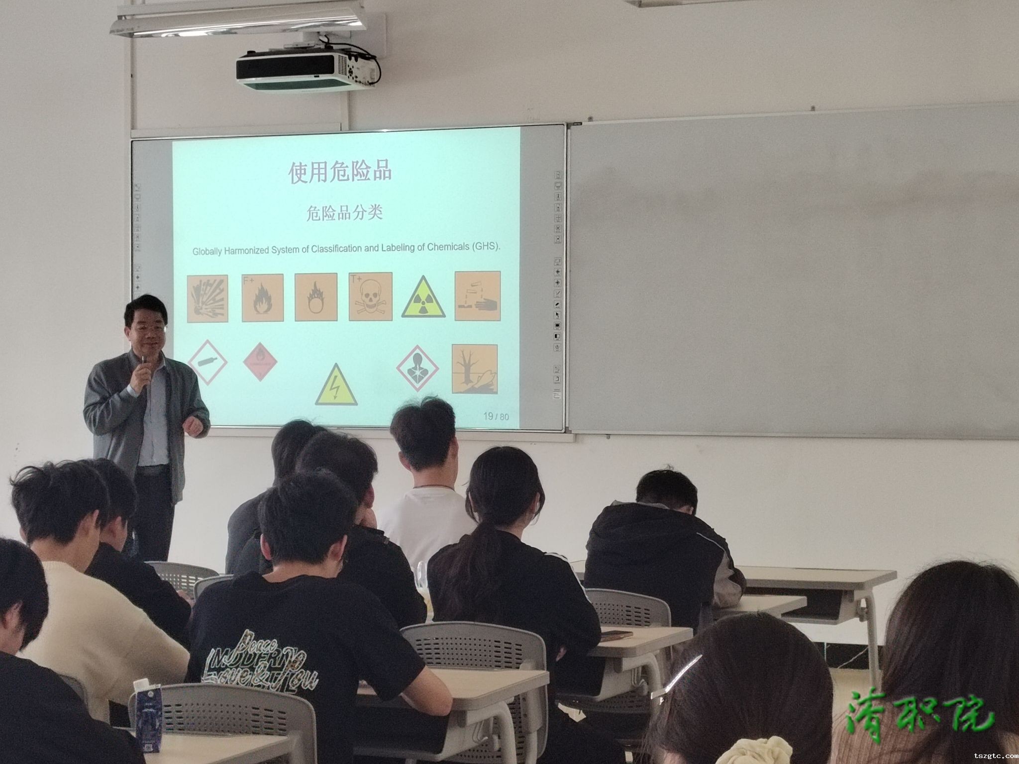 副院长黄自通从加强校园安全稳定的角度出发,全面讲解了交通安全、消防安全、网络安全、心理安全、防传销、防诈骗、防传染性和流行性疾病、防自然灾害等方面的安全事项。他从人体脆弱性能承受的温度范围、PH范围、器官鼓膜能承受的压力阈值,到人体所不能察觉的风险因数,娓娓道出化学实验室人造环境的不安全隐患,一个个真实的案例令同学们惊心动魄。他还具体讲解了在实验室如何做好个人防护的方法、如何避免实验室的安全事故和事故发生后的有效应对策略,使同学们深刻认识到安全无小事,事事总关情。