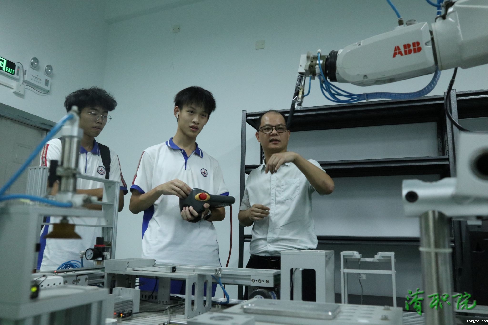 在“工业机器人编程”课堂上,郭汉桥老师引导学生了解机器人结构与任务执行逻辑。学生们在16号楼实训室亲手操作,从指令输入到动作执行,体验智能制造的精准与高效,在动手实践中激发对工程技术领域的浓厚兴趣。