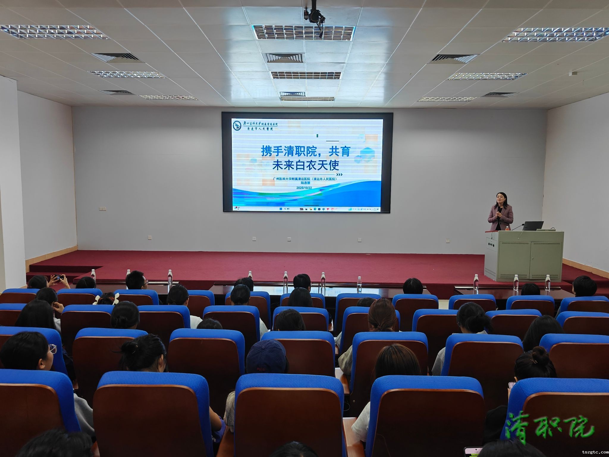 10月22日,护理学院承办2025-2026学年第六期“百万英才汇南粤”蟠龙青年就业沙龙活动。清远市人民医院护理部主任陆惠慧、清远市清城区人民医院护理部主任黄水芳、优米体育地址查询部和护理学院班子领导、学院师生300余人参加活动。