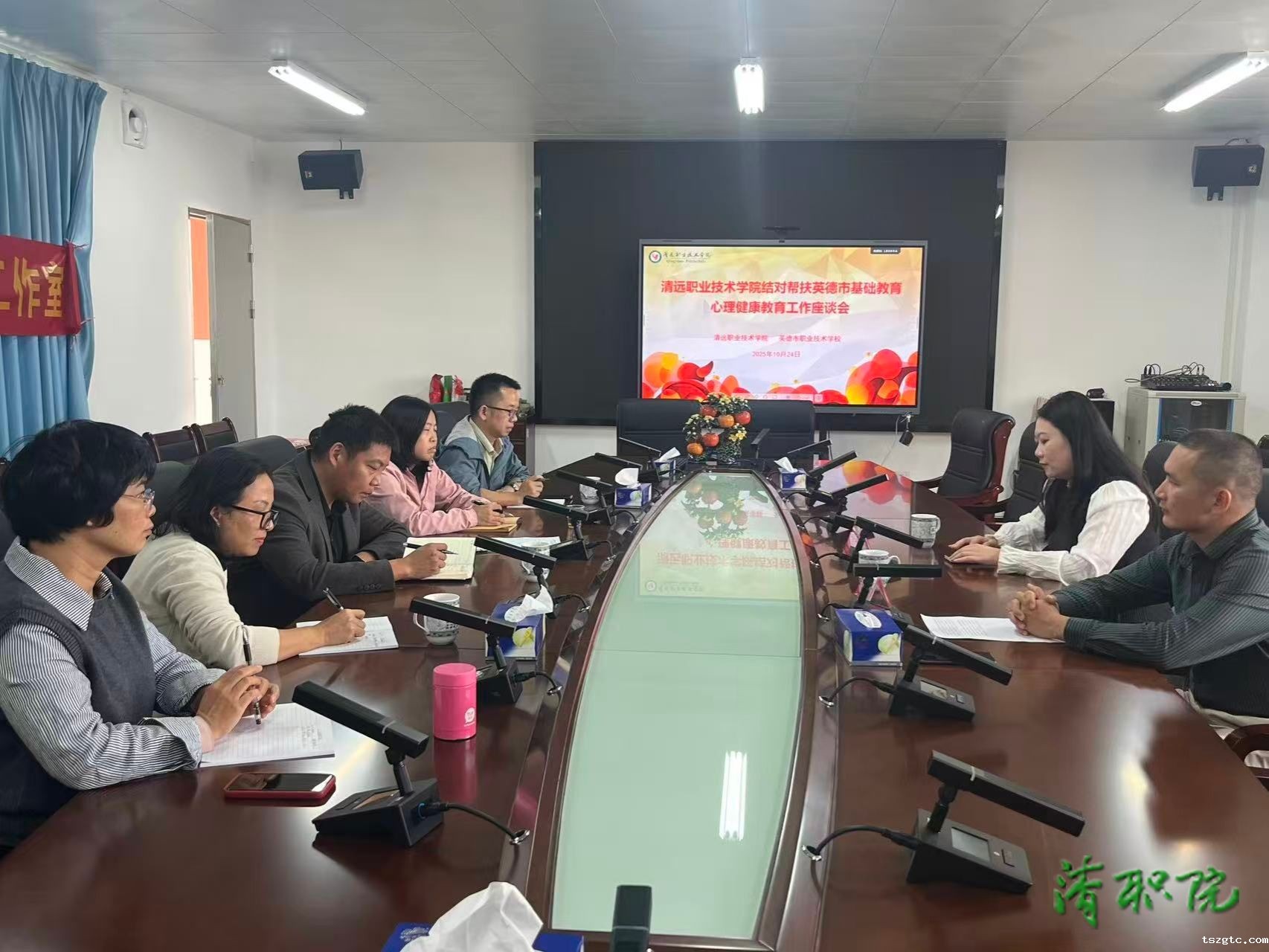 座谈会上,双方围绕典型个案展开“早期识别—风险评估—家校协同—跟踪回访”四步拆解,提炼中职“清职经验”,提示班主任盯紧“情绪、行为、生理、学业”四大信号,做到早发现、早报告、早干预,重点解析“危机黄金半小时”关键要点。与会教师直呼“干货满满,黄金一小时意犹未尽”。会后,两校共建“清职—英德心育工作坊”微信群,持续输出课程资源与个案督导,实现线上“随时诊”,助力英德心育队伍提质强能。